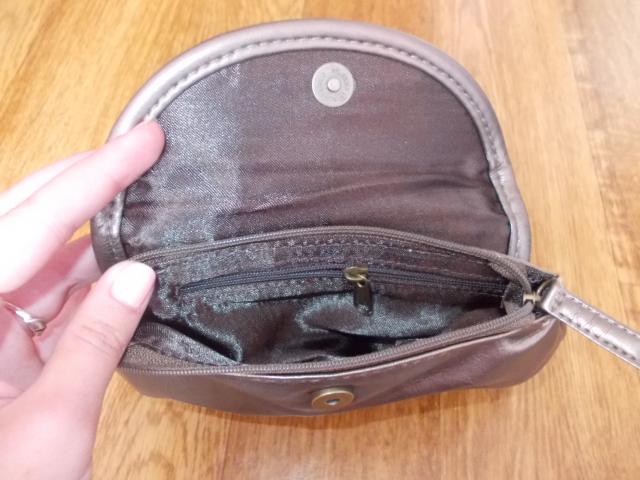 Bronzines spalvos rankinė. Viduje yra skyrelis. gan mažo dydžio.Dėl kainos galima derintis:)