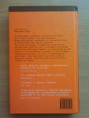 Kevino Brookso detektyvas "Martynas Pigas" Su šia knyga į paauglių literatūrą įsiveržė dar vienas vardas – Kevinas Brooksas. Buvęs muzikantas, duobkasys ir zoologijos sodo prižiūrėtojas tapo garsiu rašytoju. Tai pirmoji knyga, ji pasakoja stulbinančią detektyvinę istoriją, kuri prasideda nelaimingu atsitikimu: Martynas kumšteli jį puolančiam girtam tėvui, ir tas griūdamas užsimuša į židinio kampą. Sukaustytas baimės, jis taip ir nepaskambina policijai. Tada jam padėti pasišauna kaimynų mergaitė Aleksė.