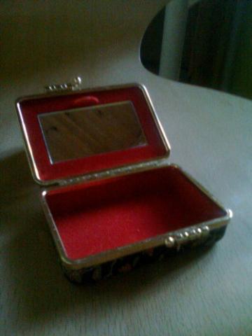 Labai faina papuošalų dėžutė su gelių raštais ir veidrodėliu.