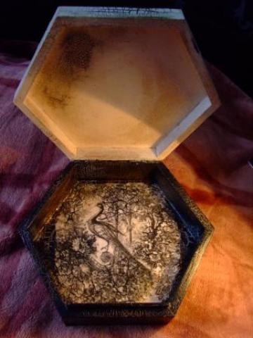Dezute papuosalams, dekoruota dekupazu.