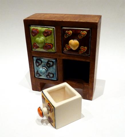 Labai geros būklės, nedidukė, mediniu rėmu su keramikiniais stalčiukais. 16,5 ir 14 cm