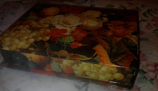 Gėlių ornamentais iliustruota storo kartono dėžutė. Joje puikiai sutilptu ir nuotraukos ir papuošalai . Ši dėžutė ne tik pasitarnaus norint rasti vietą smulkmenoms, bet ir puikiai papuoš Jūsų interjerą.