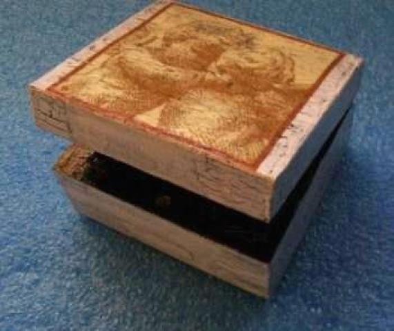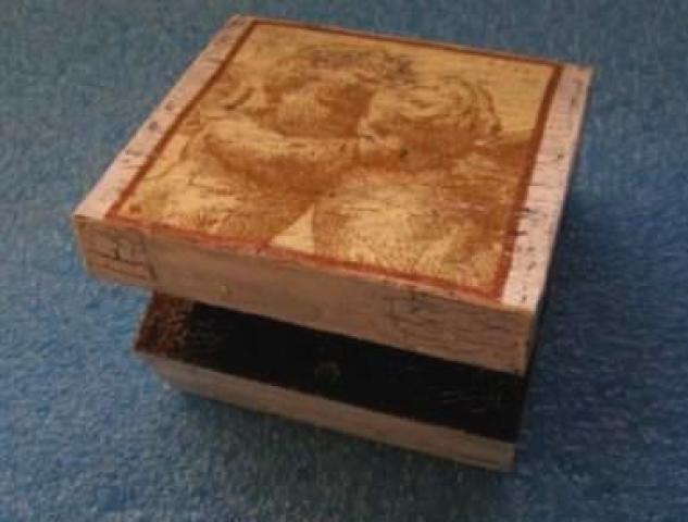 Medine nedidelė dėžutė, padailinta dekupažo technika