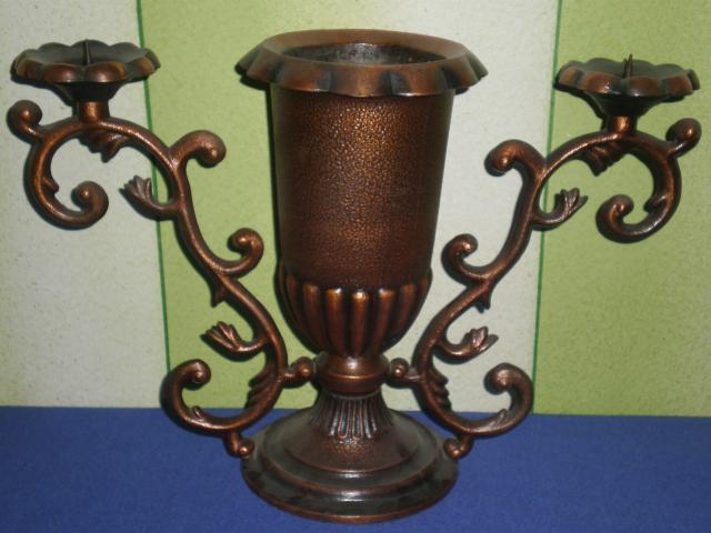 Didele bronzine vaza gelems su 2 vietomis zvakemis (zvakidemis)