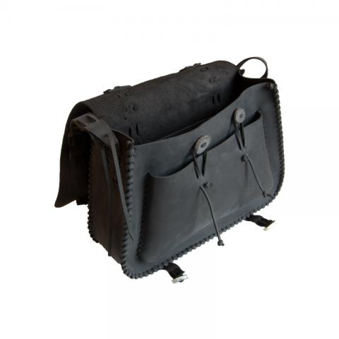 Natūrali 2 mm storio oda. Matmenys 36 x 25 x 12 cm (telpa A4 formato segtuvas). Užsegimui panaudotos iš rago gamintos sagos. Trijų skyrių, papildomas skyrelis telefonui, prisiūtas karabinas raktams prisegti. Reguliuojamo ilgio rankena. Oda impregnuota aliejumi.