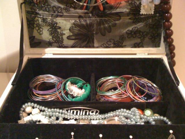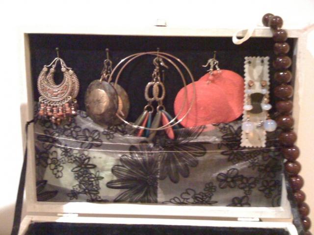 pati pasidariau:) nes turiu to gerio nemazai, tai reikejo kazkur susikraut.. vidus 2sluoskniu. apyrankems/ karoliams etc.kiti 2 auskrams ir dar kazkam kam norisi. balta isore - juodas veliurinis vidus.
