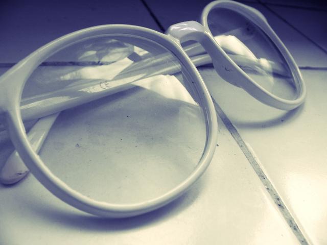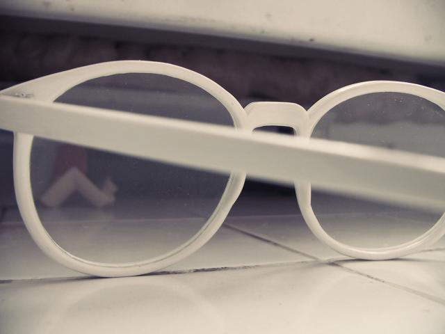 dideli baltos spalvos akiniai su permatomais stiklais O.O