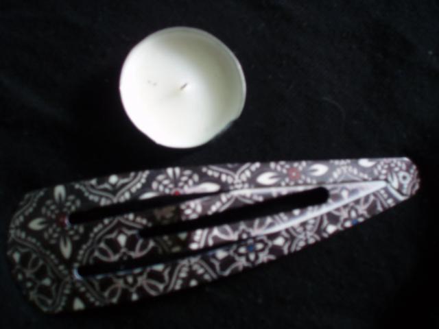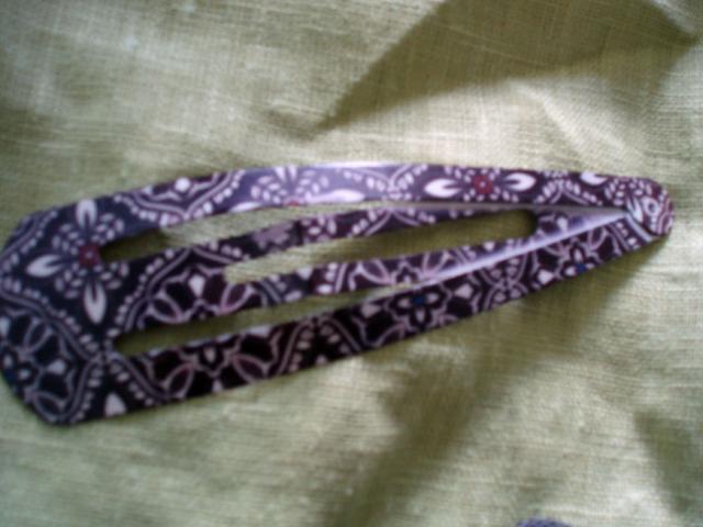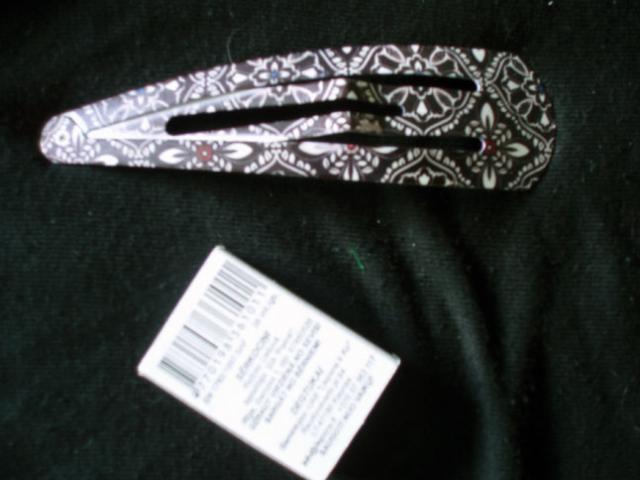 itin nemažas gražus dailus plaukų segtukas. parsivežiau iš Prancūzijos šį pavasarį, tačiau taip ir nenešioju. stilingas, gražus, kokybiškas (čia tik nuotraukų kokybė nekokia) baltas raštas tamsiai rudai vyšniniai violetiniame fone, yra vos įžiūrimų neryškios raudonos ir mėlynos spalvos priemaišų, bet jos vos įžiūrimos ir gražiai įsipaišol;)