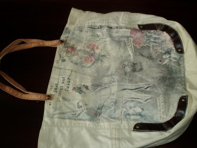 Su pamušalu,viduje 3 kišenės,viena jų su užtrauktuku.Išmatavimai 43x 40cm.Šonai ir apačia 15cm pločio.Labai talpus ir tvirtas.rankenų ilgio užtenka nešti ant peties