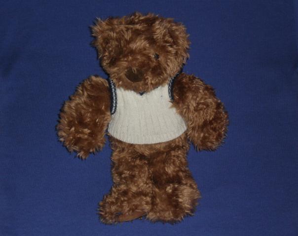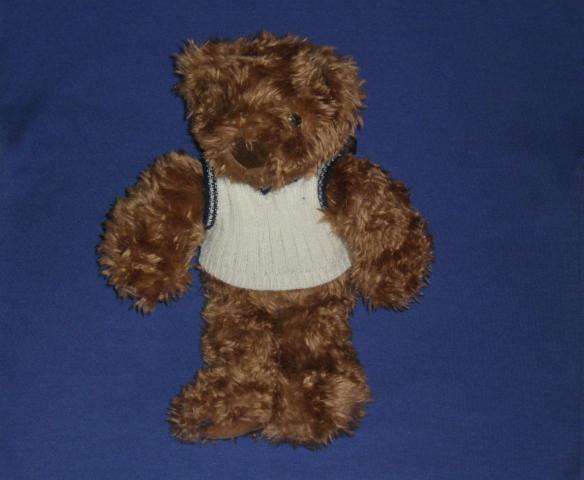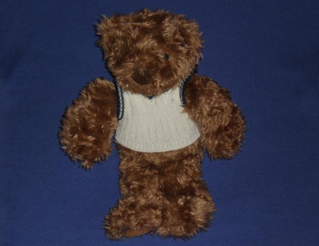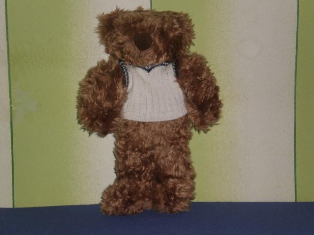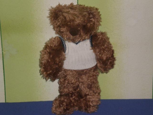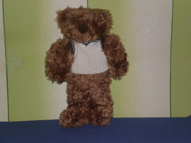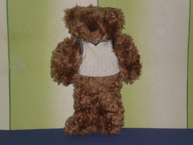 Didelis rudas pliusinis meskinas su baltu megztuku