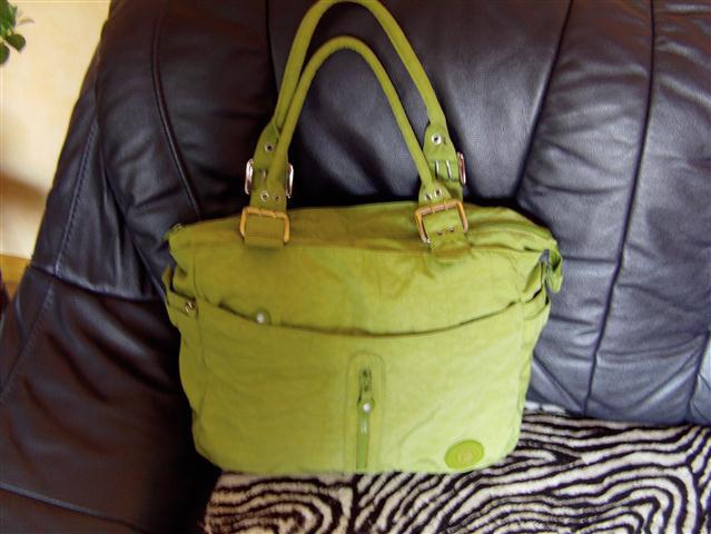 Didelis ryškus rankinukas. Vienas didelis skyrius ir daug kišenėlių :) Turi vieną mažą trūkumą - prie užtrauktuko per siūlę šiek tiek prairę, bet tikrai galima pataisyti. Išmatavimai: 37 x 30 cm :)