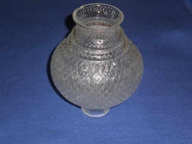 Didelis stiklinis senovinis gaubtas lempai ar sviestuvui
