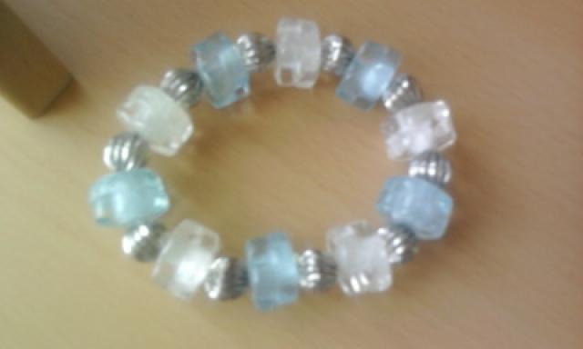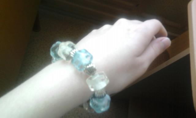 Dėl kainos visada galima derėtis:) Mano rankų darbo apyrankė tačiau riešas negali būti plonesnis nei 12.5 cm. nes apyrankė iš stiklo ir metalo karoliukų todėl turi šiek tiek svorio ir mažesnės apimties rankytei tiesiog bus per didelė ir kris nuo riešo. Tampri ir tiks net stambesnei rankai.