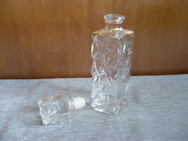 Didokas, kvepalų, tualetinio vandens butelis. Galima naudoti ir kaip stipraus alkoholio grafiną. Tarybinių laikų, užrašas "Iceberg" ant auksinės juostelės, galima nuimti. Aukštis užkimšto 25 cm, atkimšto 18,5 cm.Talpa 400 ml. Kamščio galo plastikinis apvalkalas standžiai įsikiša į butelį, todėl yra labai sandarus ir iš jo niekas nenugaruos. kaina 3,5 €