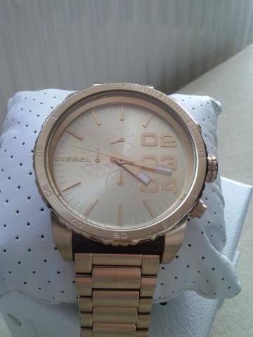 Parduodu labai mazai nesiota DIESEL laikrodi. Laikrodis kaip naujas. Garantija vieneri metai. Pirkimo data 2013.02.08, pirktas is : http://www.firstclasswatches.co.uk/diesel-mens-chronograph-gold-tone-steel-bracelet-watch-dz4268-p-11636.html Ciferblatas 52mm (Didelis laikrodis!)