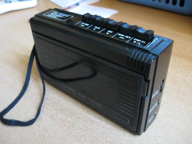 Įrašas per vidinį mikrofoną,.. gali būti tiesiog kasečių grotuvas, yra autostopas, galimybė pasijungti išorinį DC 4,5V maitinimą arba 3 AA baterijos, korpusas be pažeidimų, turi vidinį garsiakalbį.