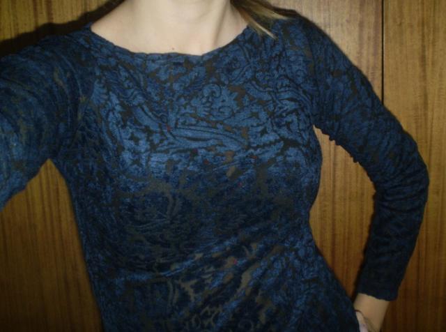 mėlyna,ilgomis rankovėmis,šiek tiek permatoma