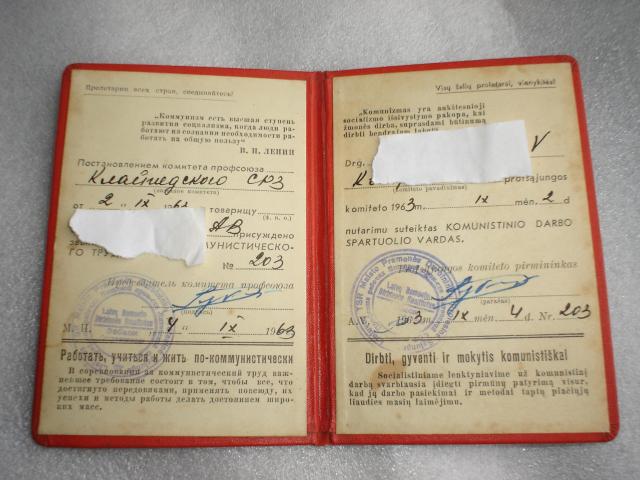 Diplomas-komunistinio darbo spartuolio vardas.Idomus laikai buvo.