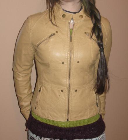 Dirbtines odos striukyte, bet tikrai gerai isdirbta. Minksta ir patogi. Vilketa keleta kartu, nes paskui pasikeite stilius ir poreikiai :). Dydis ant etiketes parasytas M, bet geriausiu atveju pamazintas M, siaip sakyciau,kad S.