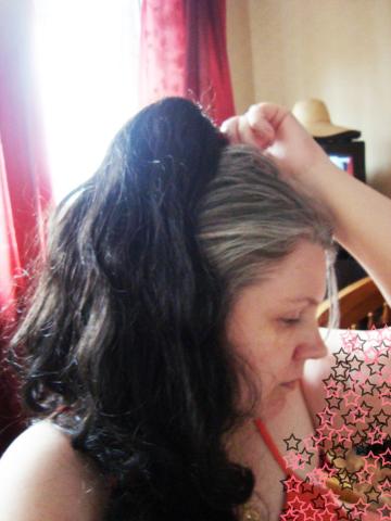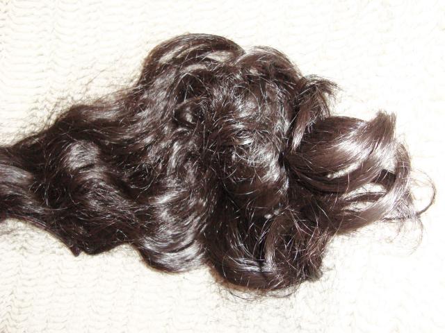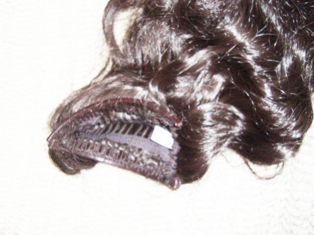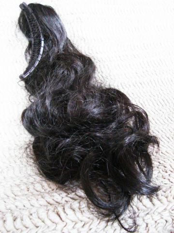 Sintetinio plauko prisegiama uodega.Pirkta senokai, nešiota viena karta, tai yra puikios buklės. Spalva- naturalios juodos žmogaus plauko. Gražiai blizga. Prisegus - apie 50 cm.