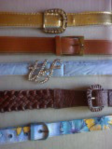 nuo virsaus: 1.aukso spalvos dirzas su kristaliuku sagtimi (lb gera bukle). 2.rudai orandzinis odinis dirzas, senovinis, mazai nesiotas 3.medziaginis zydras dirzelis su kristaliuku sagtim, geras 4.nebera