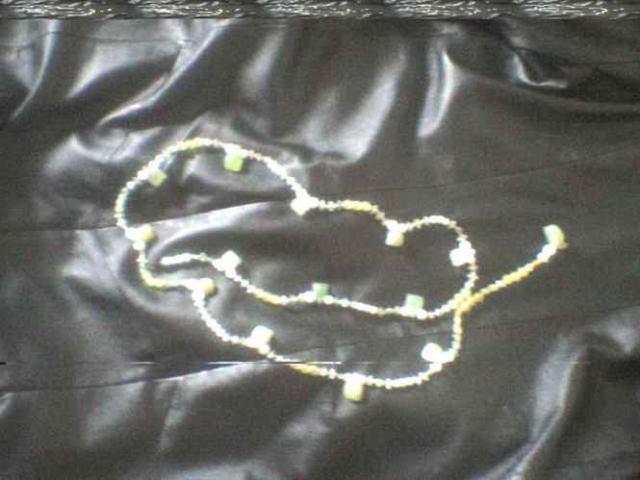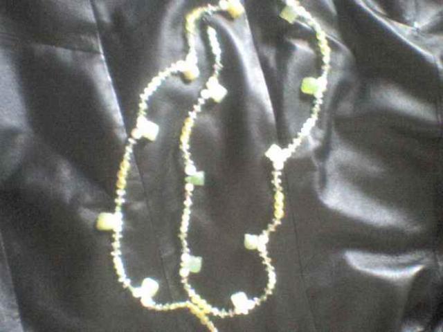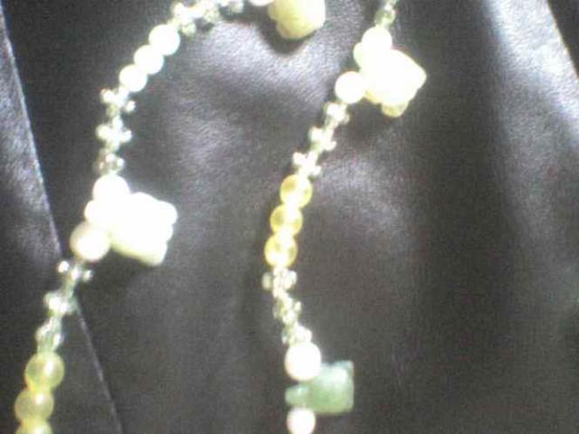 Dirza dariau pati, jo ilgis 123 cm uzsisega ant kabliuko bet kokioj vietoj, todel ismera nesvarbi. Padarytas is karoliuku ir nefritiniu vezliuku. Nefritiniai vezliukai labai grazus ir skyriasi ju atspalvis. Bendras spalvos koloritas sviesiai zalias.