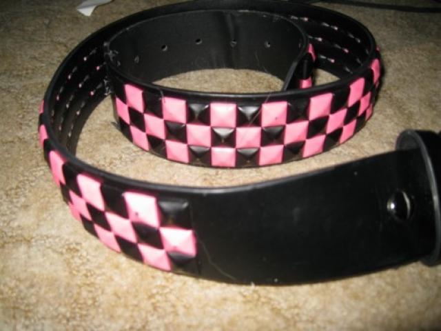 diržas su kniedėm (ružava spalva realybėjė ryški)