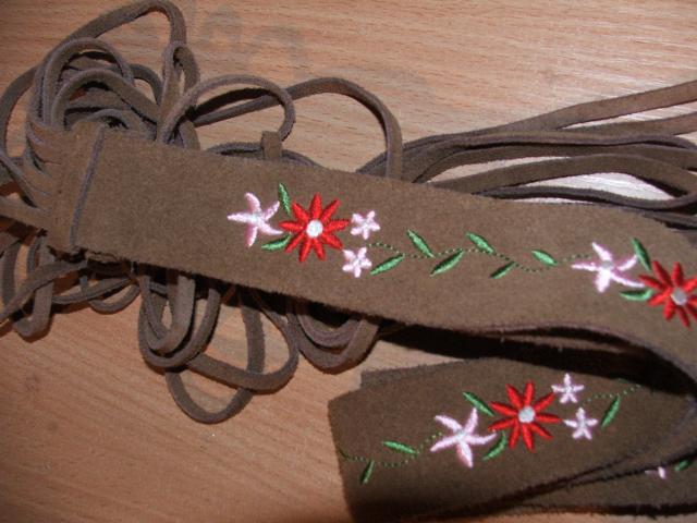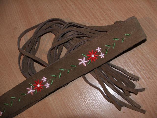 Linksmas rudas diržas, su kutosais, siuvinėtas gėlytėmis