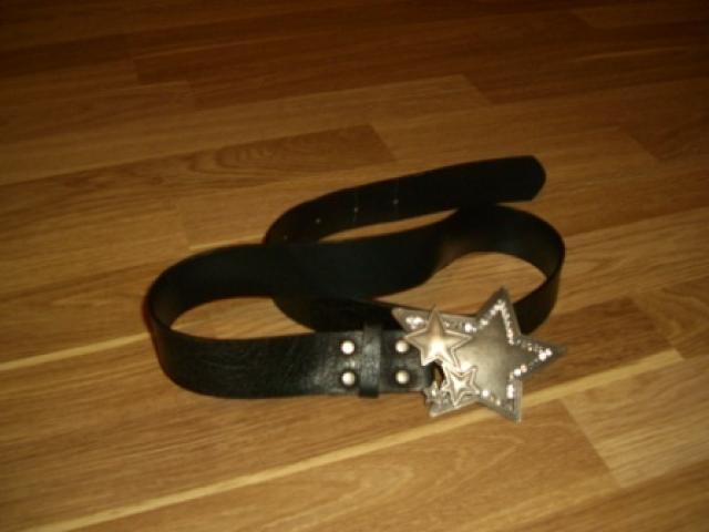 Juodas dirzas su zvaigzde. Zvaigzde su blizguciais, keli blizguciai yra iskrite.