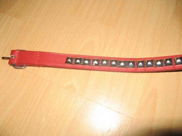 raudonas, siauras diržiukas su metaliukais;>