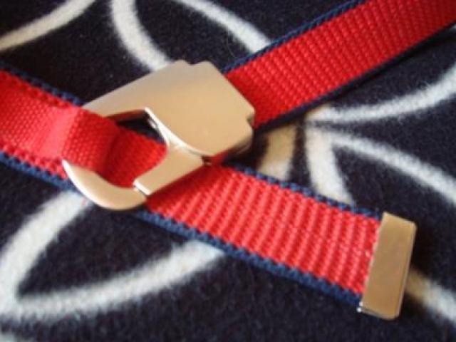puikus dirzas, raudonas su melynu apvadu ir aisku jegine sagtis.