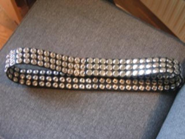 Juodas diržas visas knopkėm kaustytas, tad dydį lengvą prisitaikyt.