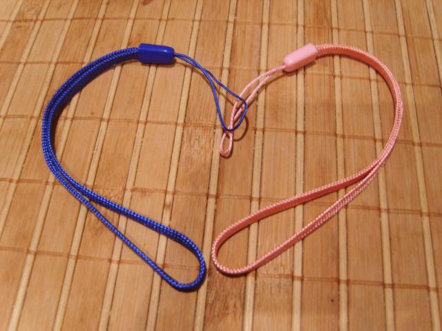 2 patogūs dirželiai, tinkantys mobiliesiems telefonams, fotoaparatams, kameroms, MP3, MP4 ir pan. Ilgis: 18cm. Spalvos: rausva ir žydra.