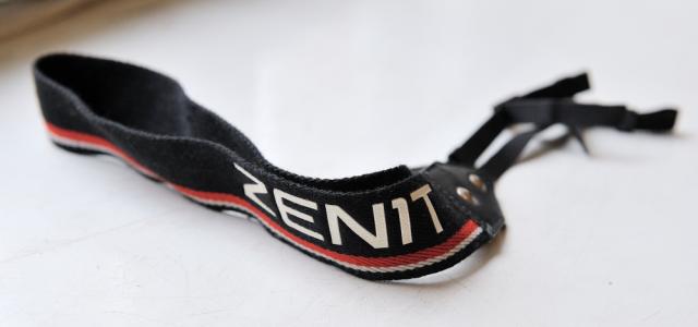 Dirželis fotoaparatui, ant kurio užrašyta ZENIT, tinka daugeliui šiuolaikinių aparatų.