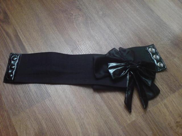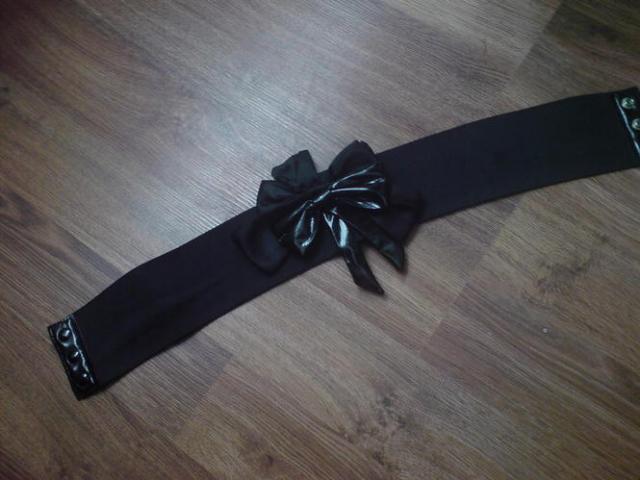 su dvigubu kaspinuku,vienas is lakuotos medziagytes,kitas is silko:)