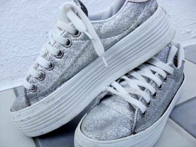Dėvėti disco batai. Sidabrinės spalvos blizgantys. Labai gražūs ir labai mano mylimi ;D su platforma. Platformos aukštis apie 4 cm. Dėl kainos galima dėrėtis.