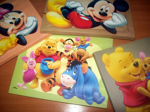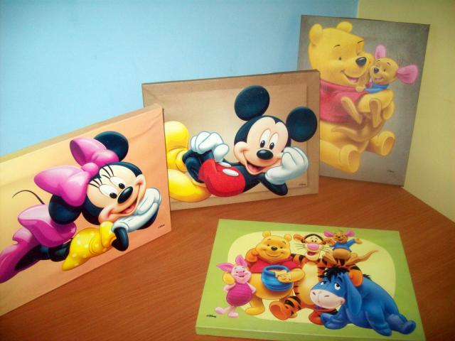 4 Disney paveikslai ant drobės. Matmenys: ~30x23cm. Vieno paveikslo kaina 10Lt