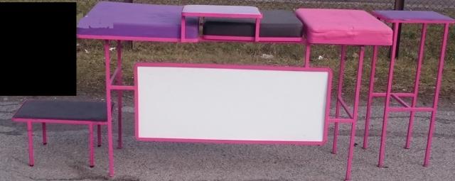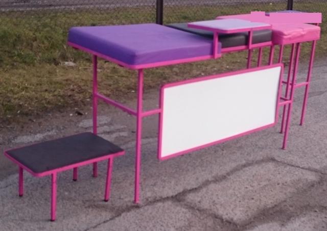 Parduodamas dj stalas. Su paminkštinimais, trijų dalių, jei spalva netinka, lengvai galima persidažyti. Stovėjo klube. Baltoje vietoje galima užsiklijuoti logotipą.