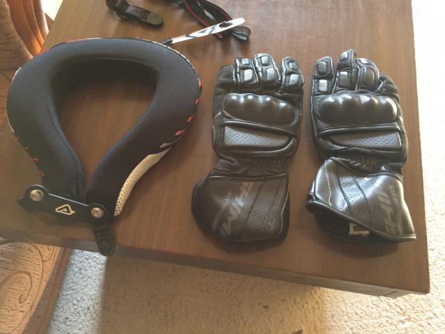 Kaklo apsauga kaip nauja ir pirstines kaip naujos.Pirstiniu 45 eurai, Kaklo apsauga 25eurai
