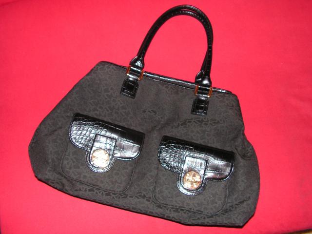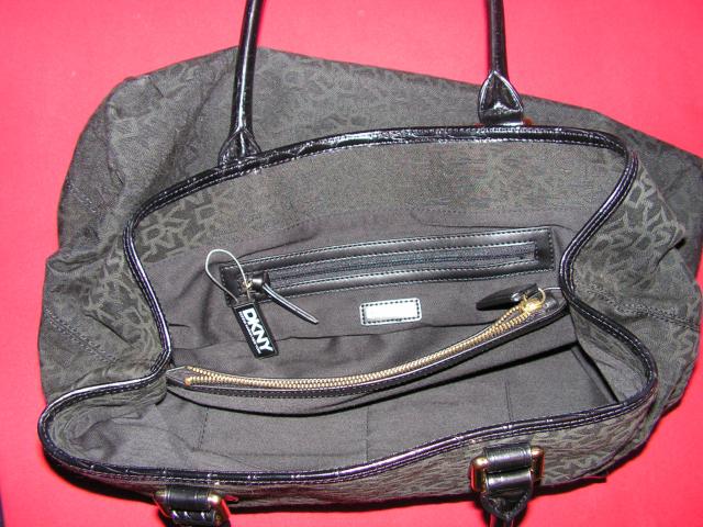 Nauja, labai talpi, patogi rankinė. Audinys išpuoštas DKNY logotipu.Metalinės,auksinės spalvos detalės puošia rankinę.