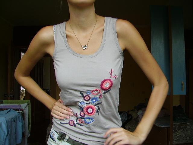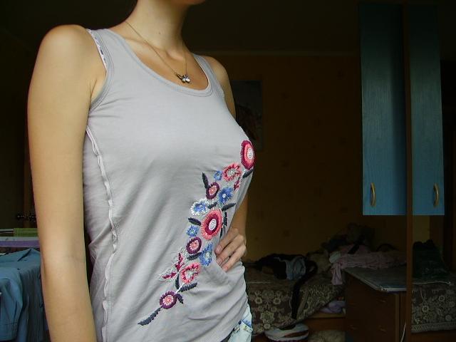 Įdomi pilka palaidinė, išsiūvinėta gelėmis : ) Dydis būtų S/M :)