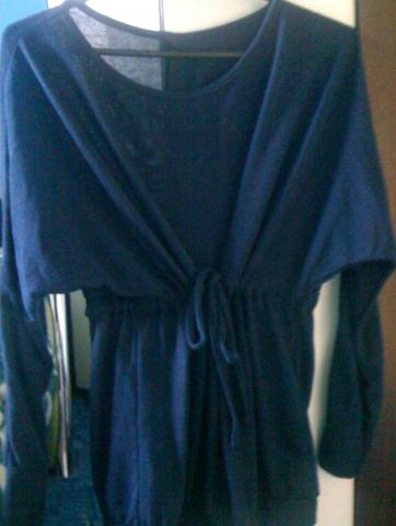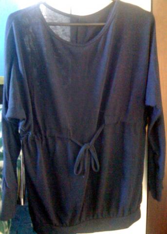Ilgesnis megztinis, per juosmenį yra raištelis. Atrodo iš tiesų gražiai ir neįprastai :)