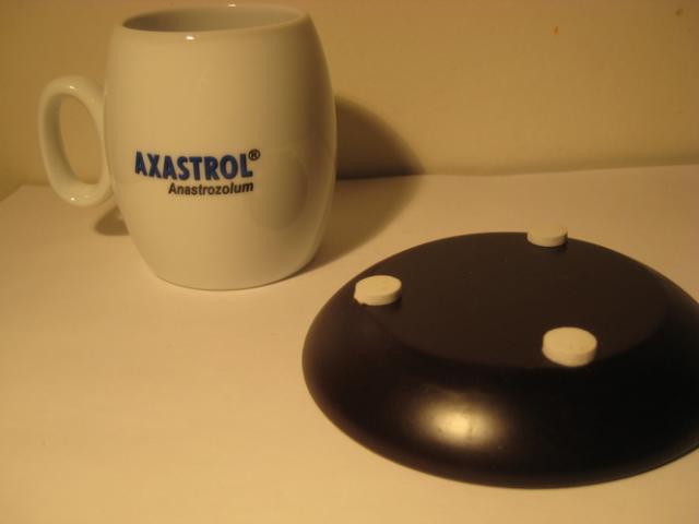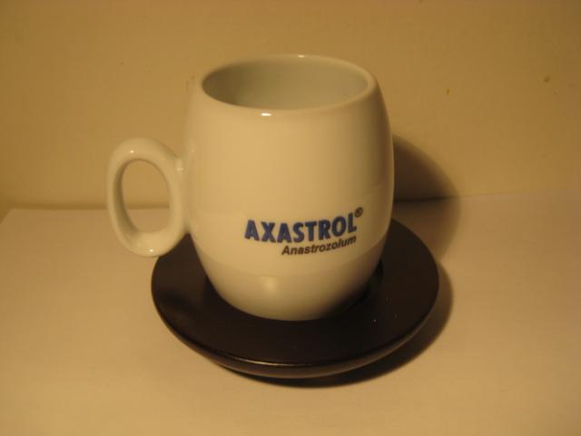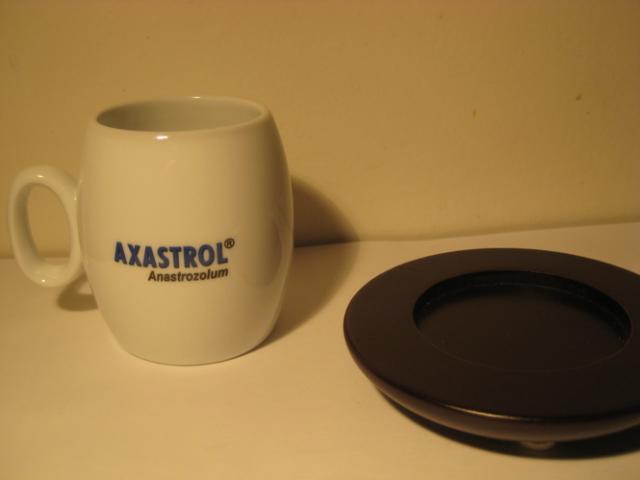 Puodelis su reklama. Ypatingas savo neeiline forma. Nėra labai didelis.