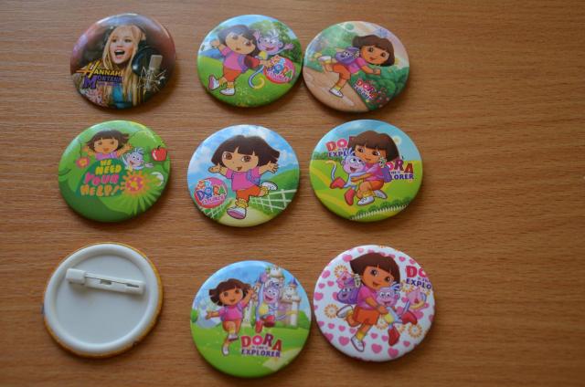 Nauji ženkliukai su Dora. Ženkliukų skersmuo ~ 4,5 cm. Tad puikiai atrodys įsisegus į marškinėlius ar kuprinę. Jei koks ženkliukas patinka - rašykit. Vieno ženkliuko kaina 0,5Lt Kaunas. Galiu siųsti ir į kitus miestus (+pasto islaidos)