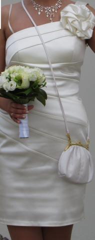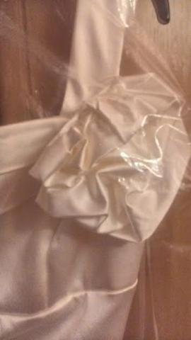 Parduodama Doridorca vieną kart per nuostabias vestuves vilkėta suknelė. Dydis rašomas, kad L tačiau kaunietėms būtų gerai pasimatuoti. Mokėta 327 Lt, Etiketė pridedama. Defektas būtų toks, jog po valymo apsigadino gėlė, tačiau ją galima arba prisiūti arba visai nuimti (antra nuotrauka). Suknytės sudėtis - 62 proc. acetatas, 35 proc. poliesteris, 3 proc. elastanas.