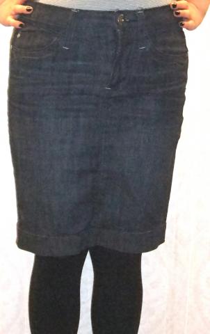 "Dorothy Perkins" džinsinis sijonas iki kelių su skeltuku nugaroje. labai geros kokybes. labai dailiai atrodo. visada pasipuošus.