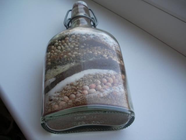 Dovana.Dekoracija senoviniame butelyje