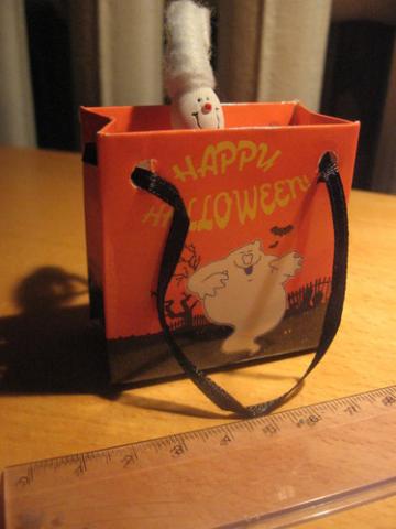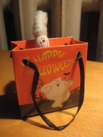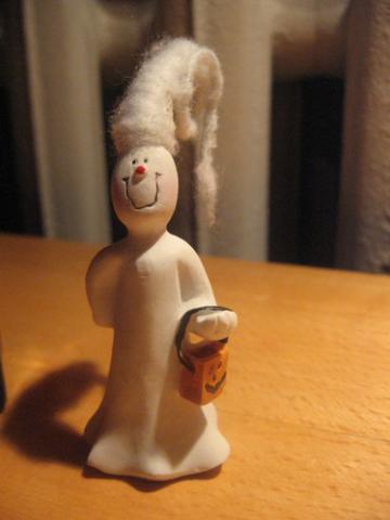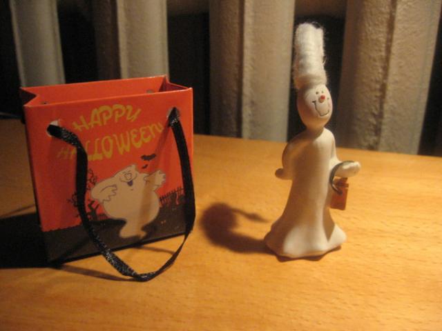 Mažytė skulptūrėlė - vaiduokliukas. Su specialiu mažu maišiuku dovanai