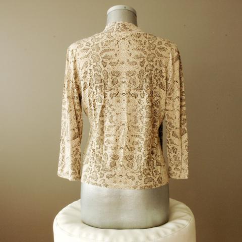 Gyvates odos imitacijos medžiaginė palaidinė. Nenauja, tačiau geros buklės. 3/4 rankovės. Lengva ir patogi 42 dydis, bet tinka ir 40. Medžiaga tampri. Mielai mainausi į man patinkančius daiktus, galėčiau teisiog pridėti prie mainų dovanų. :)