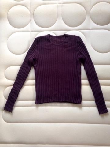Trumpa megzta palaidinė Spalva ne tokia ryški violetinė, labiau violetinė+bordo. Atiduodu kam reikia. Ilgis 36cm, krūtinė 37cm, apačia 31cm, tempiasi.